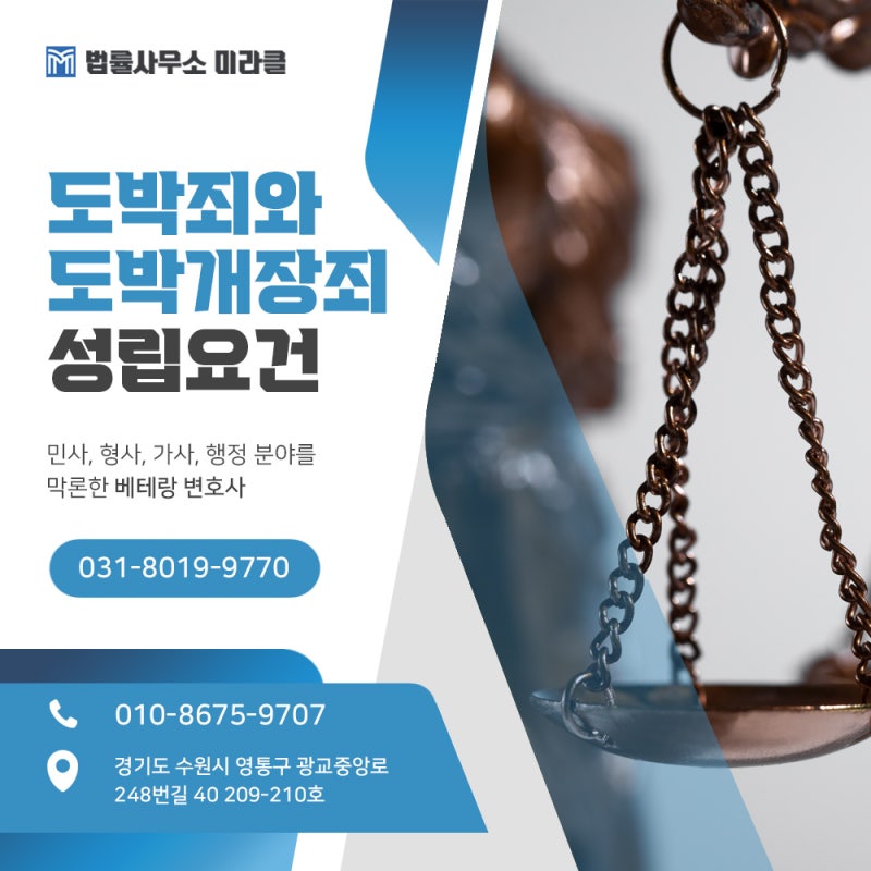 상습도박, 도박장 개설 등의 혐의를 받을 경우 엄중한 처벌이 예상되기 때문에 사건 초기부터 수원형사전문변호사의 도움을 받아 대응하는 것이 무엇보다 중요합니다.
